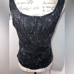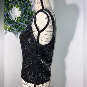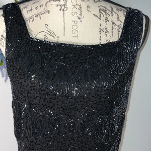 Dress barn collection, S, black metallic sequin, beaded, fully lined, square neck line, rear zip hook &eye closure, tank top