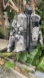 in a monochrome of black white and gray, we have several different fabrics, actually in a jacquard made to look like a patchwork. There’s a black-and-white leopard print hound tooth, a floral, bamboo print, and a velvet trimmed in a velvet fabric. Excellent condition.