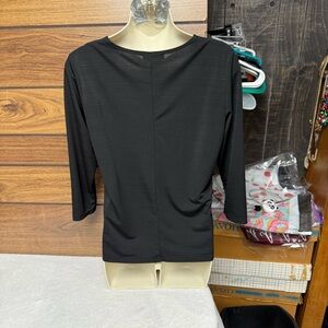 Dress barn size small Black Relaxed Pleated 3/4 Sleeve Blouse