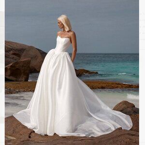 Dress like the queen that you are c/o Miles. Crafted from a luxe woven taffeta, a gathered Basque waistline accentuates an hourglass shape made modern via a softly scooped neckline. Drama reigns supreme via the ballgown skirt, making Miles a royal lesson in maximalism for minimalists.