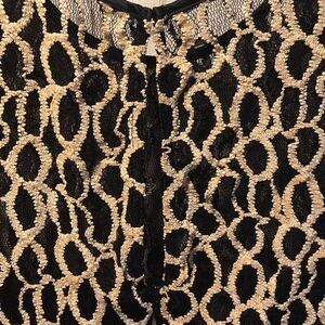Dress by Kataya black mesh with tan overlay pattern ladies size 16