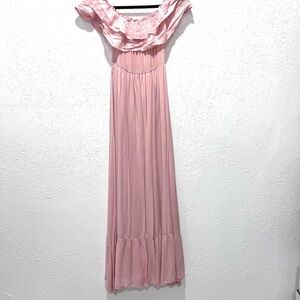 Dress day Pink Ruffled Off-Shoulder Maxi Dress S