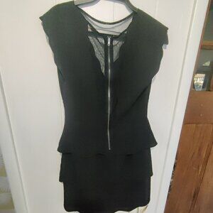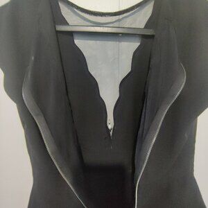 Sexy Smart Dress, a must have for most occasions. Scalloped Plunging neckline with mesh, continuing down the back of dress. Full silver back zipper. Polyester, Handwash