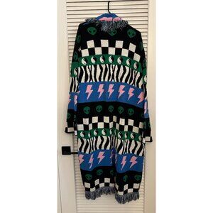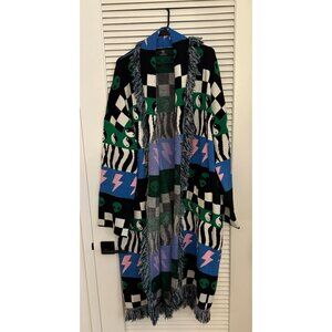 Dress in LALA Luxe Fringe Blanket Cardigan in Wonderstruck Size L/XL