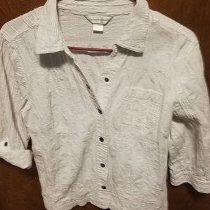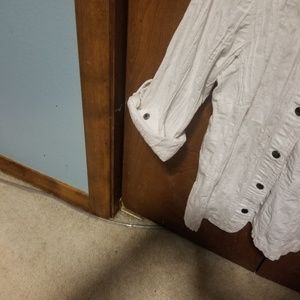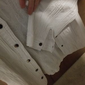 White snap up light weight jacket meant to have that crinkled affect size large