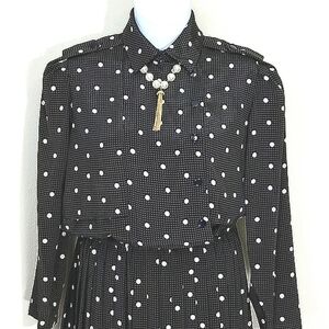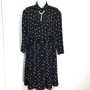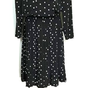 Dress long sleeve houndstooth polka dot maxi Size 10 black brown white print