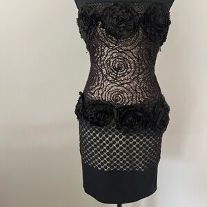 This is a special and unique dress made by designer Marc Bouwer and fits a XS and S. It is stretchy. please take a look at the pictures and video I attached