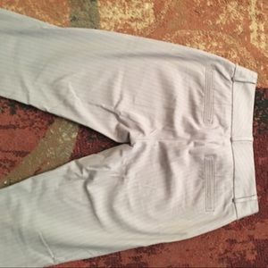 Fancy straight legged dress pants. On the left lower part of pant there is a slight stain