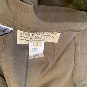 Jones New York Country Essentials, 55% Algodon and Tercel…….button, zipper and hook closure…..29” inseam….cold water machine gentle wash.
