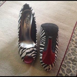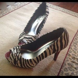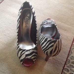 Candie's cloth Zebra print open toe very nice. Wore only once like new without box.