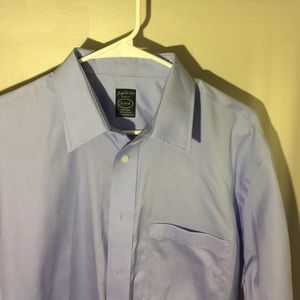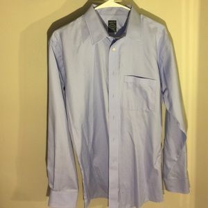 Nice dress shirt, good condition. Worn once. Light blue dress shirt. This CLASSIC dress shirt would go with any navy, gray, or black suit, blazer, etc. and a tie, or with a nice pair of dress pants, no tie in the summer. Great fit, good fabric.