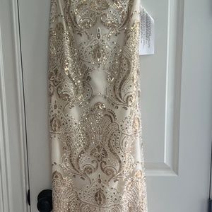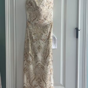 NWT!!!! Dress the population white and gold sequins gown. Size xs (0-2). Strapless and floor length