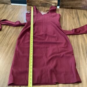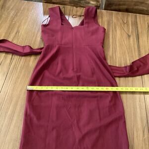 Dress the Population Alessia Tie Waist Crepe fitted cocktail short sleeveless Dress in dark magenta size med