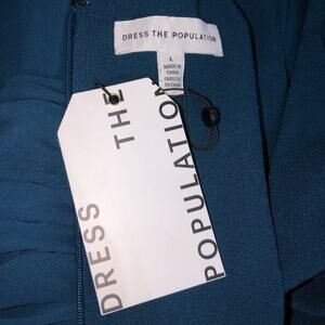 Dress the Population Alicia Chiffon Cocktail Dress in Peacock Blue Large NWT