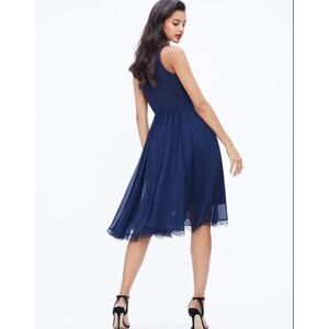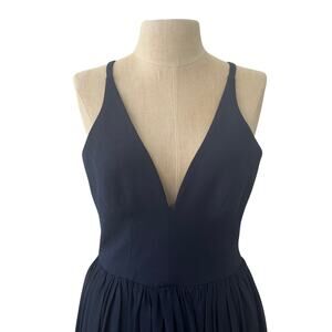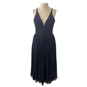 Dress the Population Alicia Mixed Media Midi Dress Navy Blue Size XS Wedding