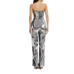 Dress the Population Andy Silver Sequin Strapless Jumpsuit Size XL Glam Party