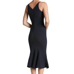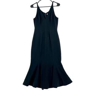 Dress the Population Black Isabelle Deep V-Neck Mermaid Midi Fitted Dress Sz S