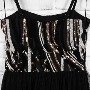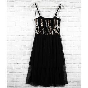 Dress the Population Black Sequin Tulle Midi Dress Women Small Cocktail Holiday