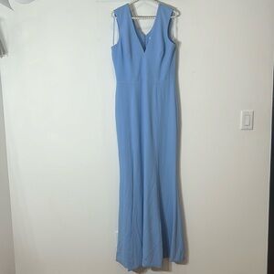 Elegant blue maxi dress. Sleeveless design. Perfect for formal occasions.