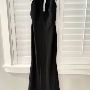This figure-skimming mermaid gown in black is as glamorous and classy. Cut with a plunging neckline and an open back, the stunning Camden gown has a halter neck that ties in the back. A floor-length mermaid style skirt hugs every flattering curve through the hips and flares at the knees to recreate Old Hollywood style opulence.