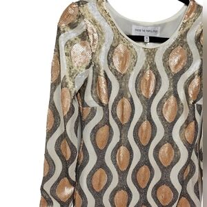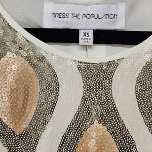 Dress the Population 'Cassandra' Sequin Shift Dress Sz XS Ivory, Copper and Silver/Gray.