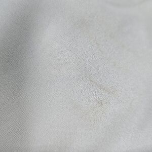 Most notable flaws are interior such as a makeup stain and yellowing from deodorant. Exterior flaws include 2 small snags (sleeve& rear) and 2 missing sequins (on rear).