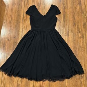 Dress the Population Corey Womens Small Chiffon Fit & Flare Cocktail Black