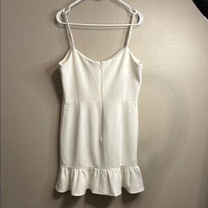 Chic cream dress with a ruffled hem, with adjustable straps. Perfect for any occasion.