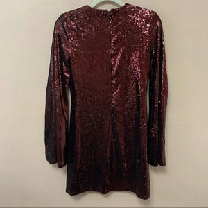Dress the Population Maroon Liza Long Cape Sleeve Sequin Minidress.