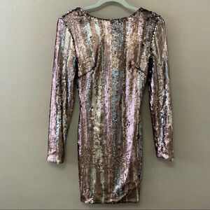 Dress the Population Fran Sequined Mini Dress in Matte Bronza Multi. Size XS.