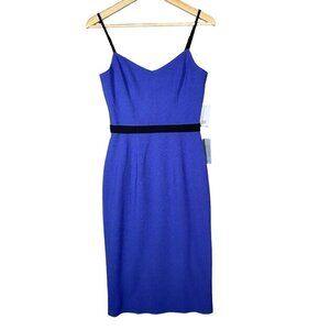 New With Tags Dress the Population Emma Bodycon Midi Dress in Blue/Violet, Size Small. *There are a few tiny fabric snags near bottom hem of dress.*