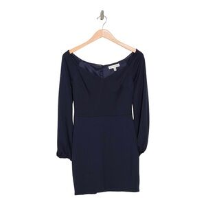 Blousy long sleeves bring airy movement to this body-hugging dress with a flattering neckline.