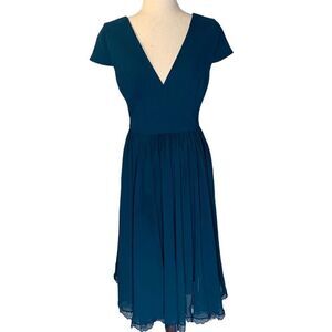 Dress the Population Fernanda Teal Fit and Flare Midi Dress | Size S