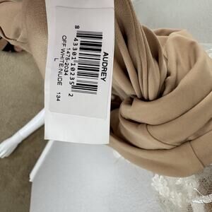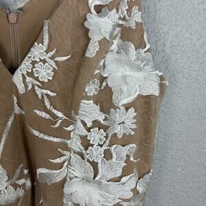 Dress the Population Fit and Flare Midi Dress Audrey 3D Floral Ivory Beige Sz L
