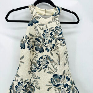 Dress the Population Hannah Dress M Floral Blue Silver Brocade Prom Party Hoco
