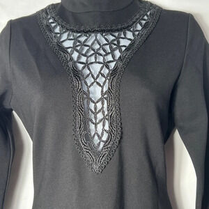 Dress the Population Hayden Embellished black dress with a lace neckline. size small. Overall good used condition. Does have one small mark on the front. Lace embroidered neckline and back with sheer material underneath. Hidden zipper.