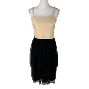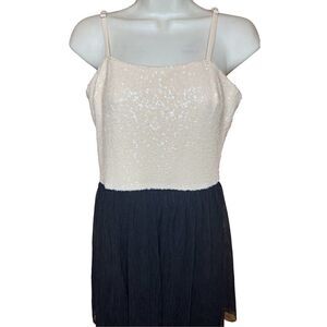 Dress the Population Kady Sequin Block Print Tiered Dress in Cream & Black NWT
