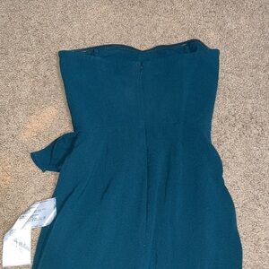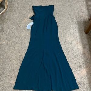 Dress the Population Kai Bustier Asymmetrical Ruffle Drape Gown Pine XS. Extra Small = 2-4. Strapless sweetheart bustier asymmetrical ruffle drape skirt gown. Ruffle accent. Removable straps included. Fully Lined. Minimal Stretch. Bodycon Silhouette. 97% Polyester 3% Spandex. Approx measurements: 14“ pit to pit, 12“ waist, & 52“ length. New condition. No stains/flaws. Smoke/pet free home. Offers welcome. Bundle & save. Ship same/next day. Packaged w/ care.