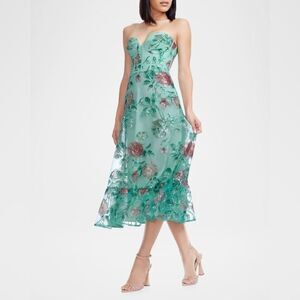 Elegant strapless dress featuring a beautiful floral design. Perfect for any occasion.