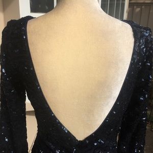 Excellent condition! I really cannot remember if this was ever worn. Short of saying new without tags I will say like new. Dark blue unique sequin design. Runs a little small but it is a bodycon.