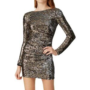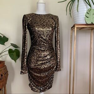 Dress the Population Lolita Leopard Sequin Sheath Dress in Gold & Black sz S