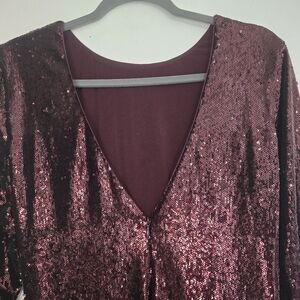 Dress the Population Lolita Red Shimmer Sequin Mini Dress Party Holiday New Year