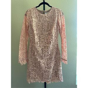 Dress the Population Long Sleeve Crochet Lace Dress in Champagne Peach Size S