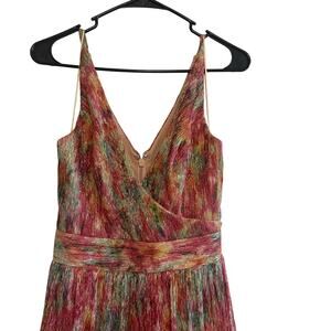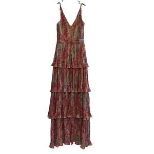Dress the Population Lorain Abstract Print Metallic Tiered Gown Maxi Dress Sz S