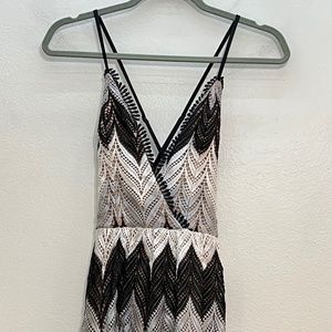 Exposed back with criss crossing spaghetti straps