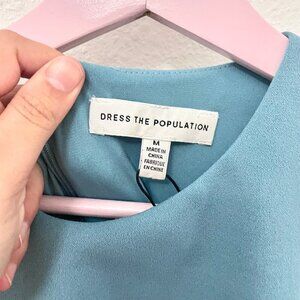 This is a gently used Dress the Population Mariela Cutout Fit & Flare Dress Sea Breeze M. In good condition. Has minor pilling on bottom. See all pics for condition.
