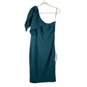 Dress the Population NWT Tiffany One-Shoulder Midi Cocktail Dress Pine Green XL