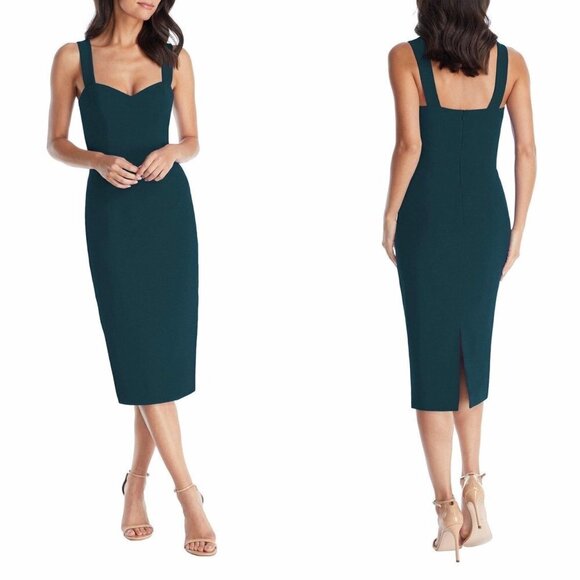 Dress the Population Nicole Crepe Sleeveless Sheath Midi Bodycon Dress Size L Pine Green