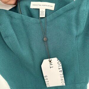 Dress the Population Nicole Crepe Sleeveless Sheath Bodycon Midi Dress L Green