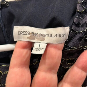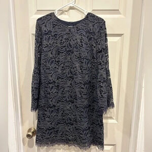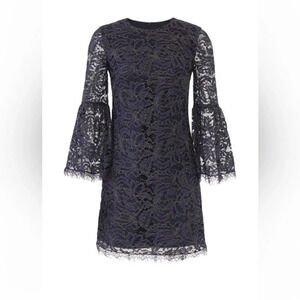 Dress the Population Paige Bell Sleeve Dress Navy Metallic Floral Lace Large